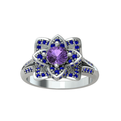 Ametist ve lab safir 925 ayar gümüş yüzük
