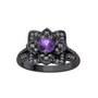 Ametist ve pırlanta 925 ayar siyah rodyum kaplama gümüş yüzük (0.9064 karat)