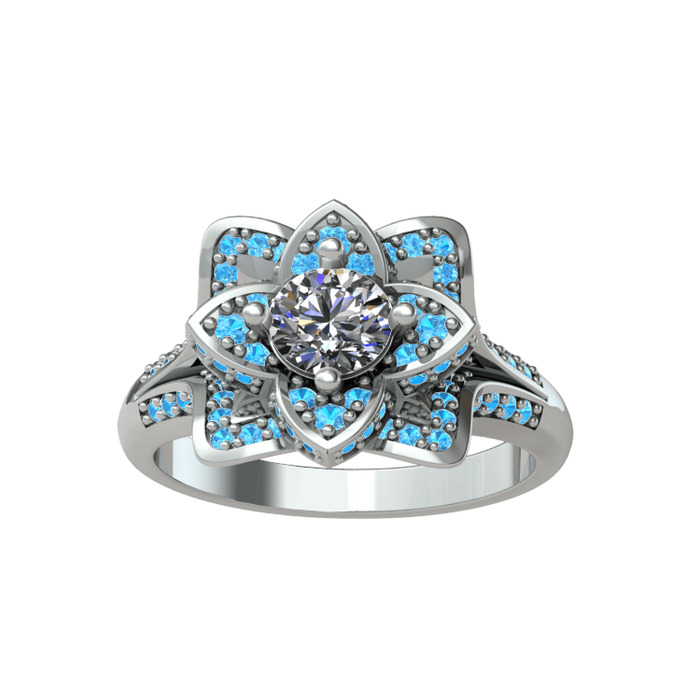 Beyaz zirkon ve akuamarin 8 ayar beyaz altın yüzük