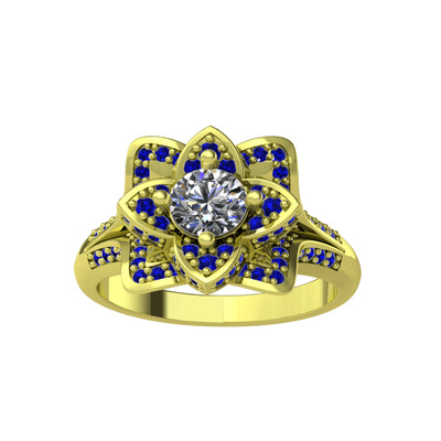 Beyaz zirkon ve lab safir 8 ayar altın yüzük