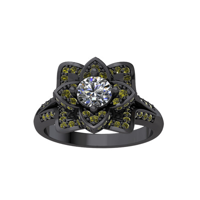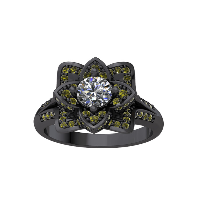 Beyaz zirkon ve peridot 925 ayar siyah rodyum kaplama gümüş yüzük
