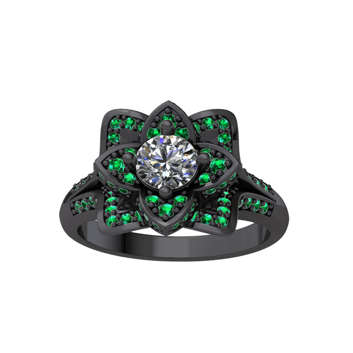 Beyaz zirkon ve yeşil kuvars 925 ayar siyah rodyum kaplama gümüş yüzük