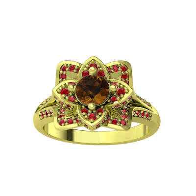 Dumanlı kuvars ve garnet 18 ayar altın yüzük