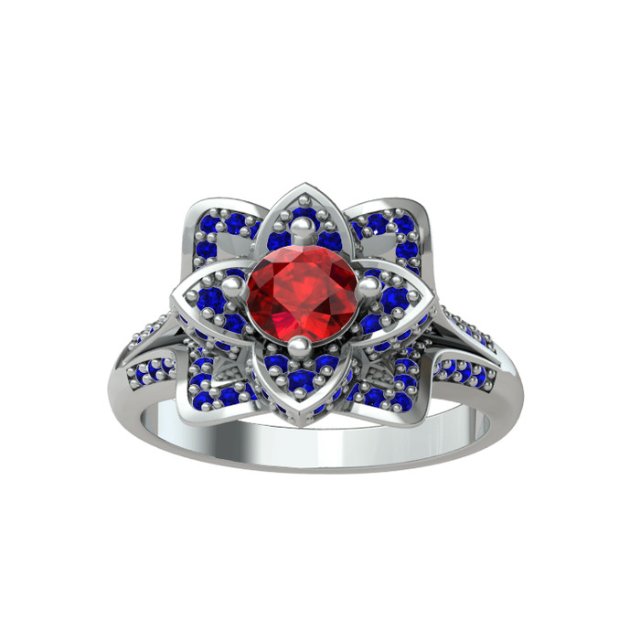 Garnet ve lab safir 925 ayar gümüş yüzük