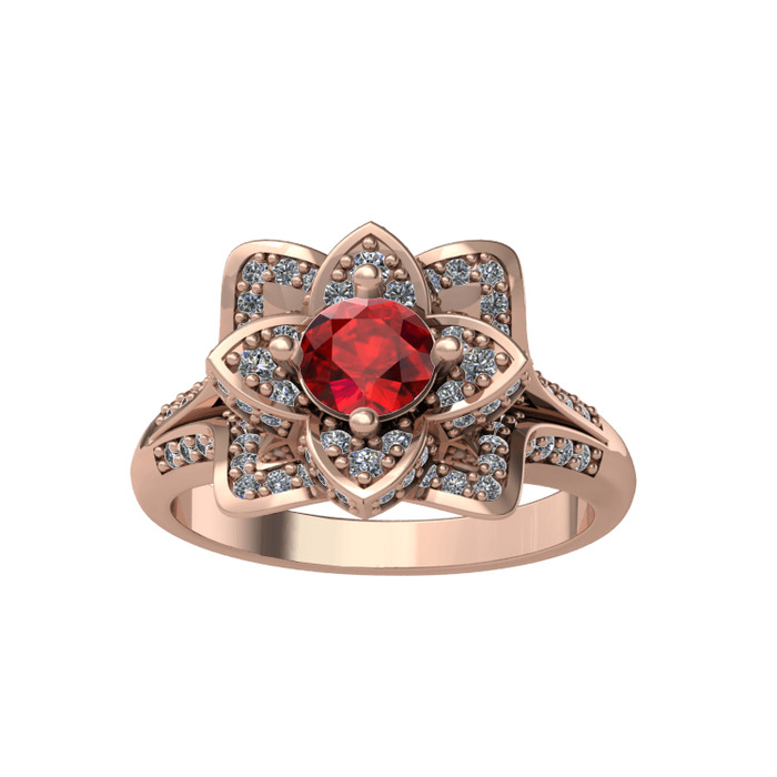 Garnet ve pırlanta 8 ayar rose altın yüzük (0.9064 karat)