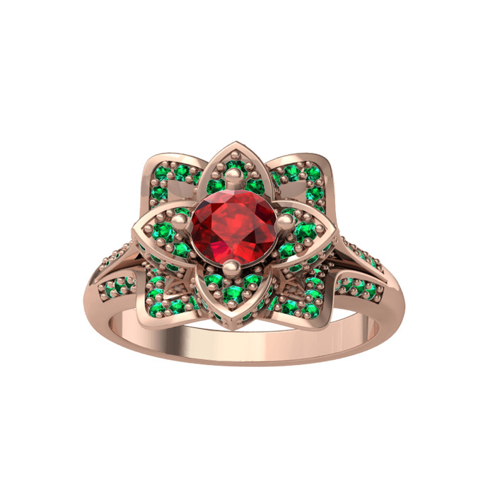 Garnet ve yeşil kuvars 14 ayar rose altın yüzük