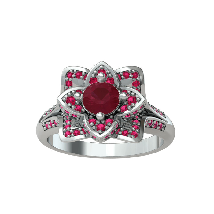 Kök yakut ve rodolit garnet 18 ayar beyaz altın yüzük