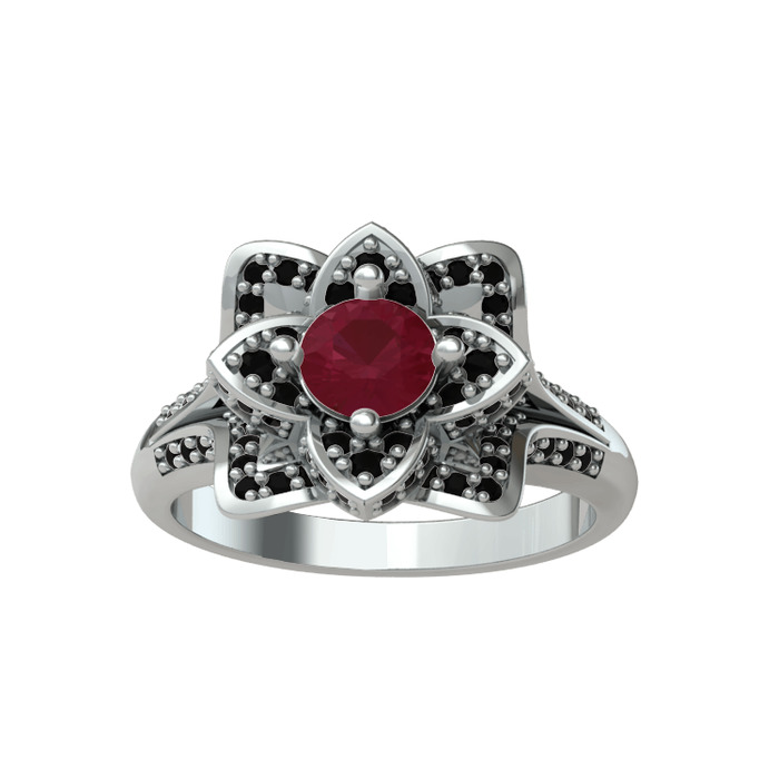 Kök yakut ve siyah zirkon 14 ayar beyaz altın yüzük