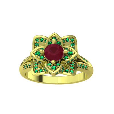 Kök yakut ve yeşil kuvars 8 ayar altın yüzük