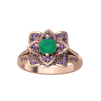 Kök zümrüt ve ametist 18 ayar rose altın yüzük
