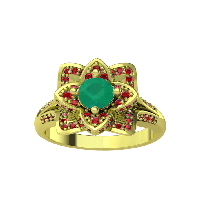 Kök zümrüt ve garnet 925 ayar altın kaplama gümüş yüzük