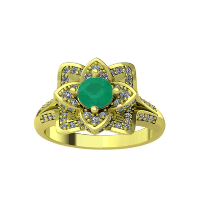Kök zümrüt ve pırlanta 14 ayar altın yüzük (0.9064 karat)