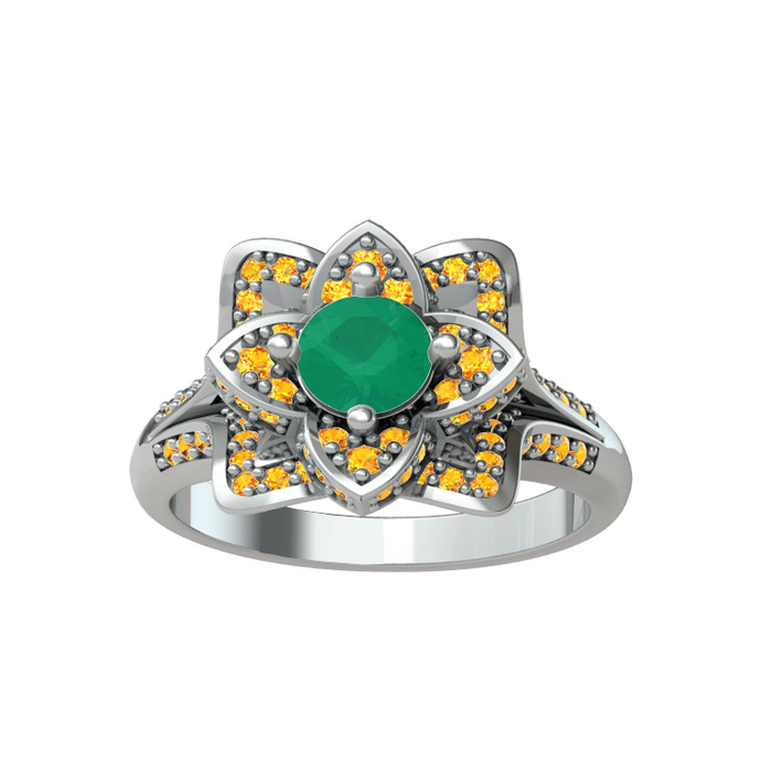 Kök zümrüt ve sitrin 8 ayar beyaz altın yüzük
