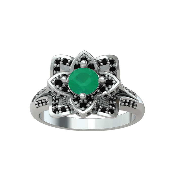 Kök zümrüt ve siyah zirkon 925 ayar gümüş yüzük