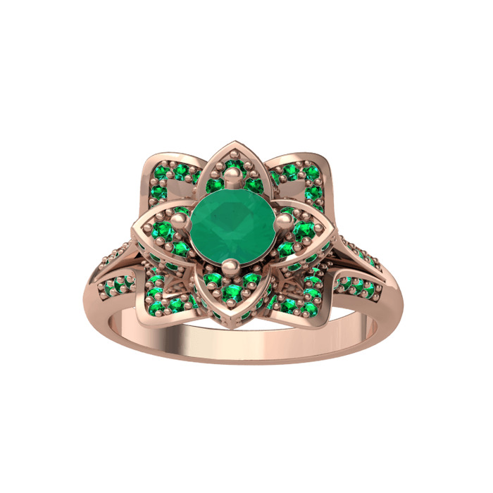 Kök zümrüt ve yeşil kuvars 14 ayar rose altın yüzük