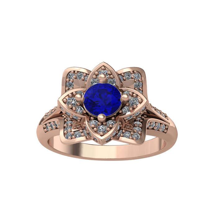 Lab safir ve pırlanta 14 ayar rose altın yüzük (0.9064 karat)