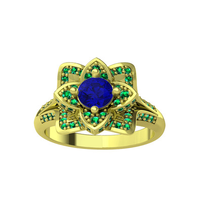 Lab safir ve yeşil kuvars 14 ayar altın yüzük