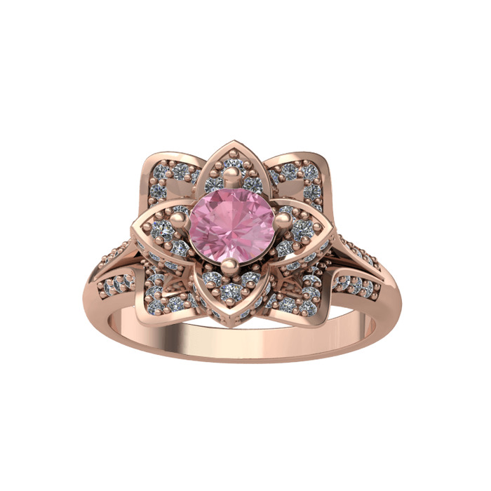 Pembe kuvars ve beyaz zirkon 925 ayar rose altın kaplama gümüş yüzük