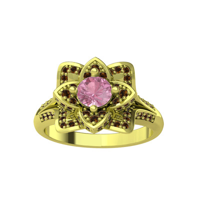 Pembe kuvars ve dumanlı kuvars 8 ayar altın yüzük