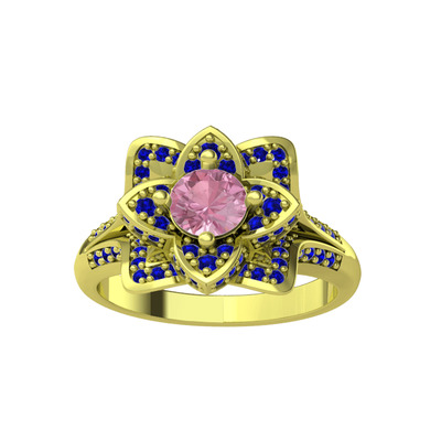 Pembe kuvars ve lab safir 8 ayar altın yüzük