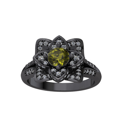 Peridot ve beyaz zirkon 925 ayar siyah rodyum kaplama gümüş yüzük