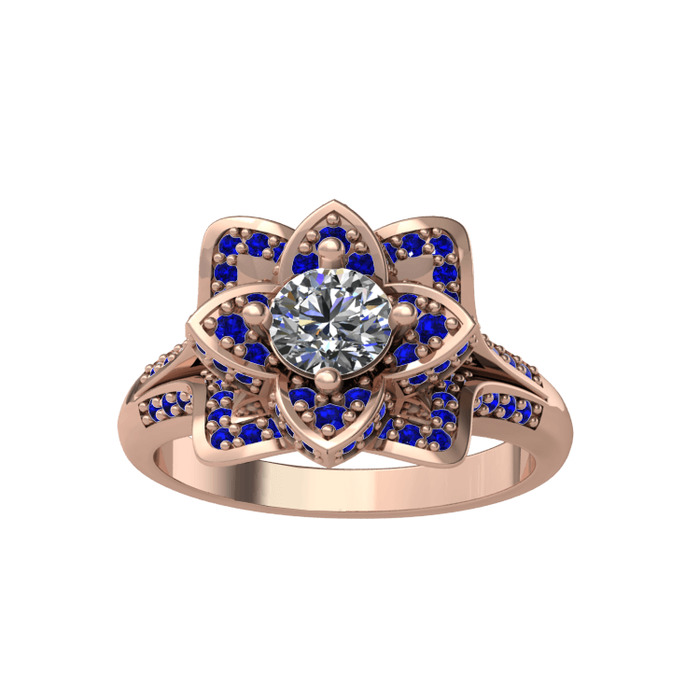 Pırlanta ve lab safir 8 ayar rose altın yüzük (0.5 karat)