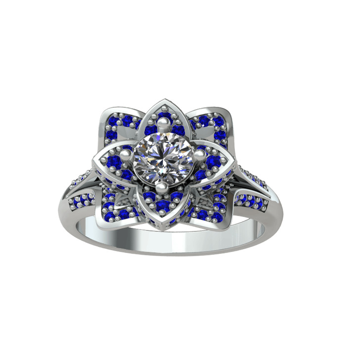 Pırlanta ve lab safir 925 ayar gümüş yüzük (0.5 karat)