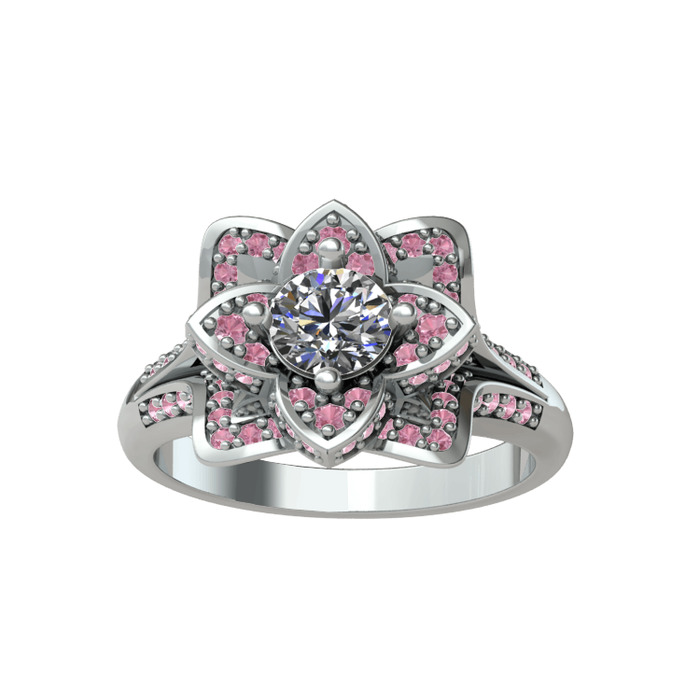 Pırlanta ve pembe kuvars 18 ayar beyaz altın yüzük (0.5 karat)