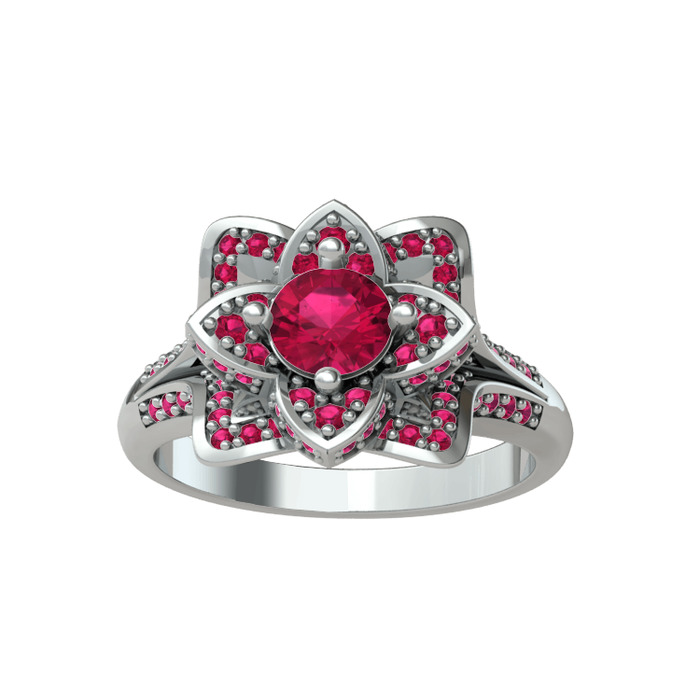 Rodolit garnet 18 ayar beyaz altın yüzük