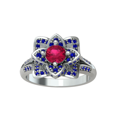 Rodolit garnet ve lab safir 14 ayar beyaz altın yüzük
