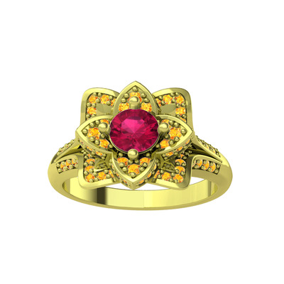 Rodolit garnet ve sitrin 14 ayar altın yüzük