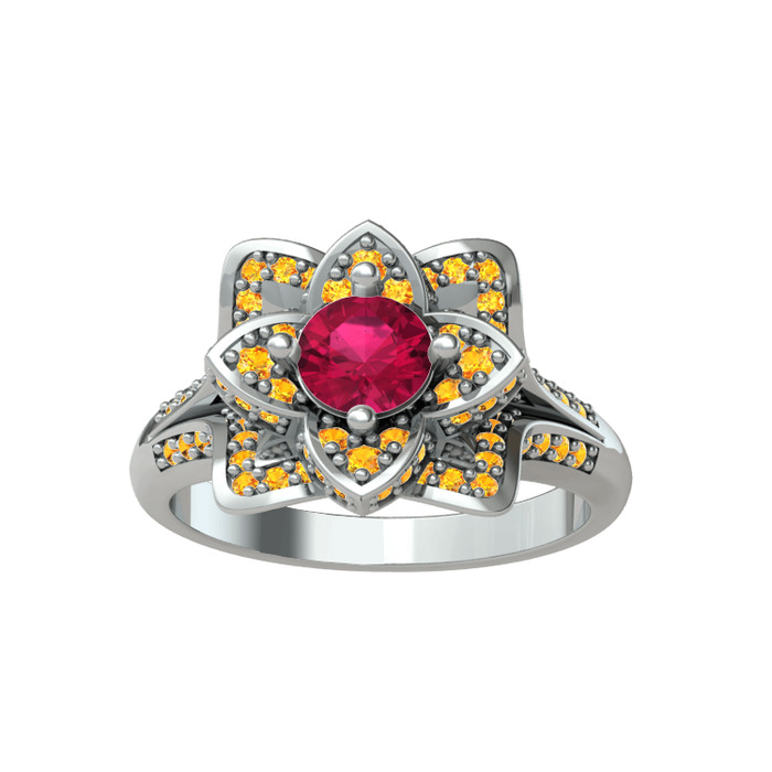 Rodolit garnet ve sitrin 925 ayar gümüş yüzük