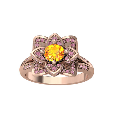 Sitrin ve pembe kuvars 14 ayar rose altın yüzük