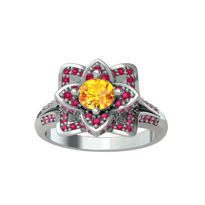 Sitrin ve rodolit garnet 14 ayar beyaz altın yüzük