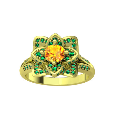 Sitrin ve yeşil kuvars 925 ayar altın kaplama gümüş yüzük