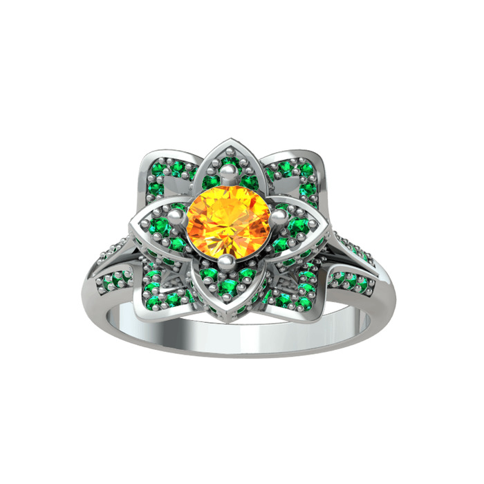 Sitrin ve yeşil kuvars 925 ayar gümüş yüzük