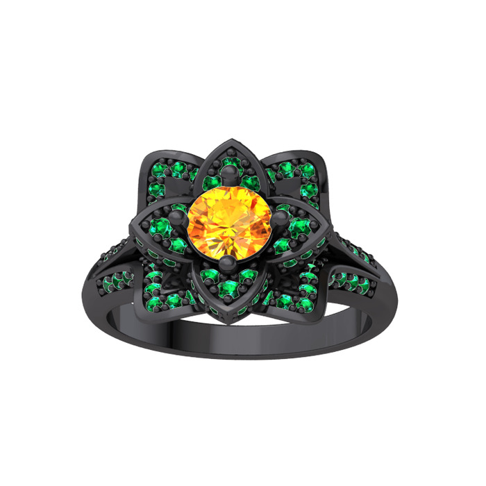 Sitrin ve yeşil kuvars 925 ayar siyah rodyum kaplama gümüş yüzük