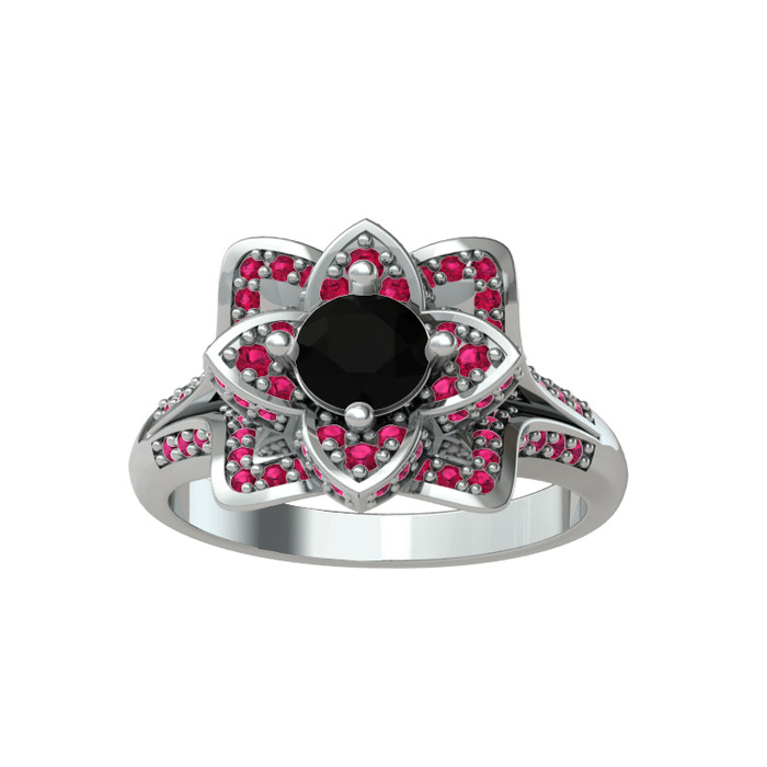 Siyah zirkon ve rodolit garnet 925 ayar gümüş yüzük