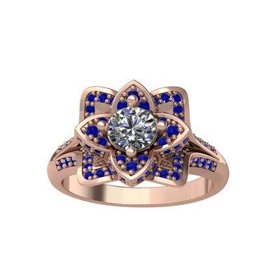 Swarovski ve lab safir 8 ayar rose altın yüzük