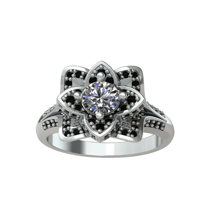 Swarovski ve siyah zirkon 18 ayar beyaz altın yüzük