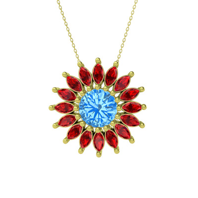 Akuamarin ve garnet 18 ayar altın kolye (40 cm altın rolo zincir)