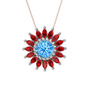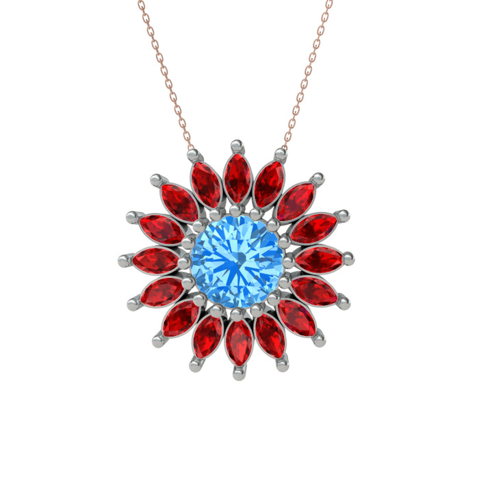 Akuamarin ve garnet 8 ayar beyaz altın kolye (40 cm rose altın rolo zincir)