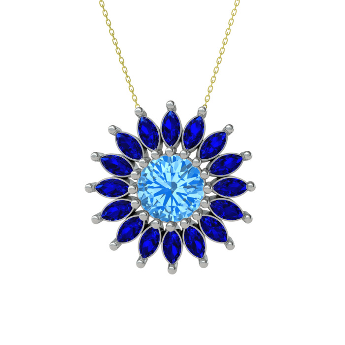 Akuamarin ve lab safir 18 ayar beyaz altın kolye (40 cm gümüş rolo zincir)