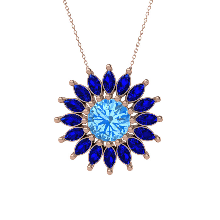 Akuamarin ve lab safir 18 ayar rose altın kolye (40 cm rose altın rolo zincir)