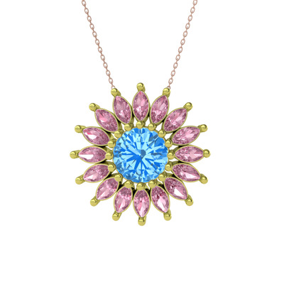 Akuamarin ve pembe kuvars 14 ayar altın kolye (40 cm rose altın rolo zincir)
