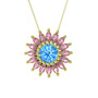 Akuamarin ve pembe kuvars 925 ayar altın kaplama gümüş kolye (40 cm altın rolo zincir)