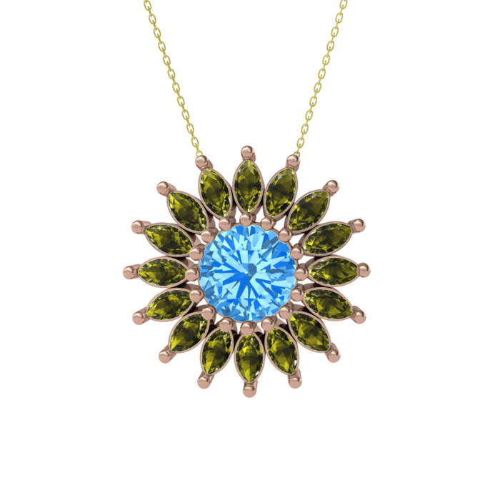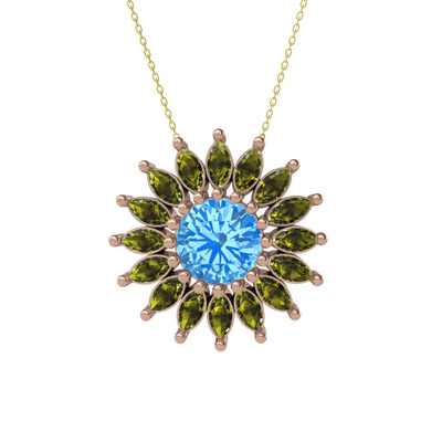 Akuamarin ve peridot 18 ayar rose altın kolye (40 cm altın rolo zincir)
