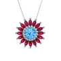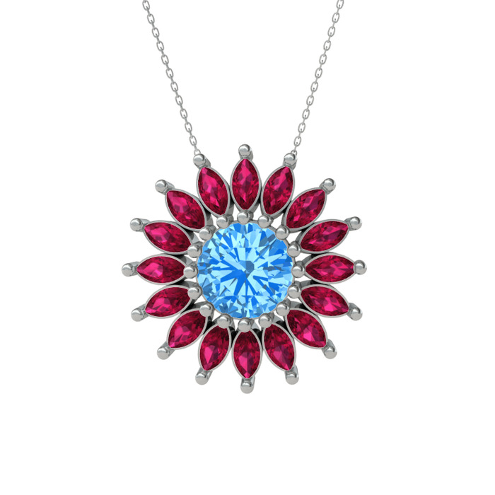 Akuamarin ve rodolit garnet 925 ayar gümüş kolye (40 cm beyaz altın rolo zincir)