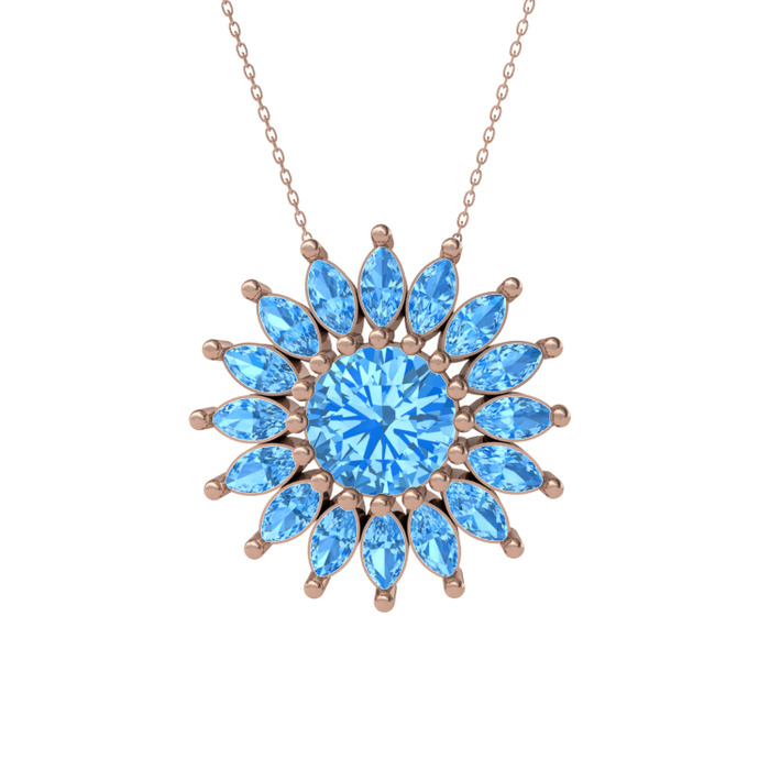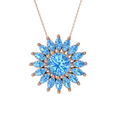 Akuamarin 925 ayar rose altın kaplama gümüş kolye (40 cm rose altın rolo zincir)