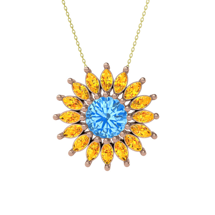 Akuamarin ve sitrin 18 ayar rose altın kolye (40 cm altın rolo zincir)